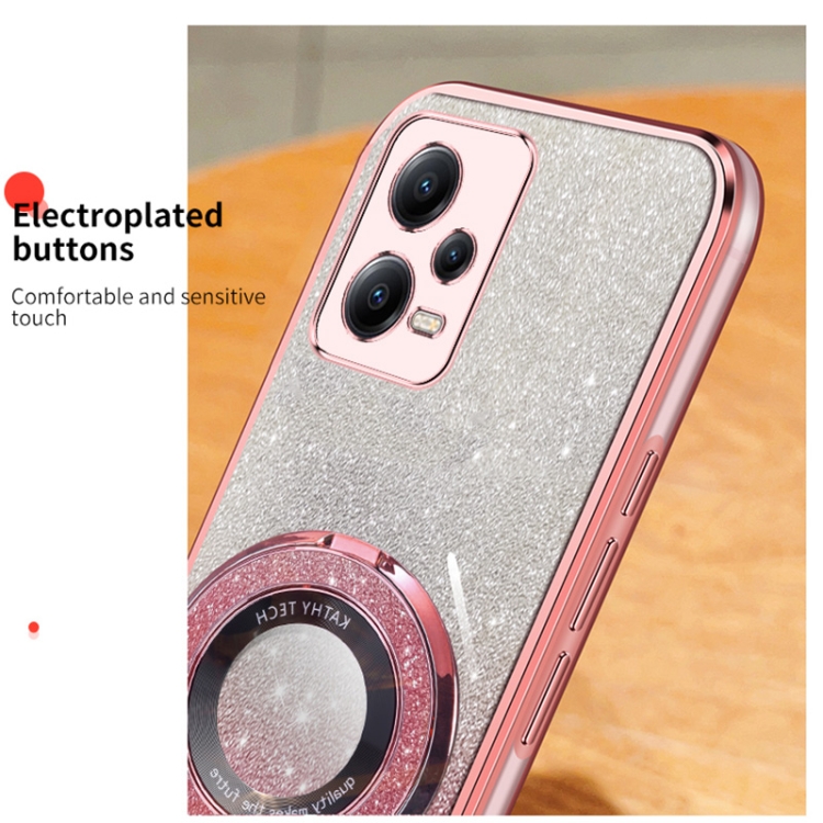 Funda de Teléfono de TPU con Soporte Redondo con Purpurina y Degradado Chapado En Oro Rosa para Redmi Note 12 5G (Morado)