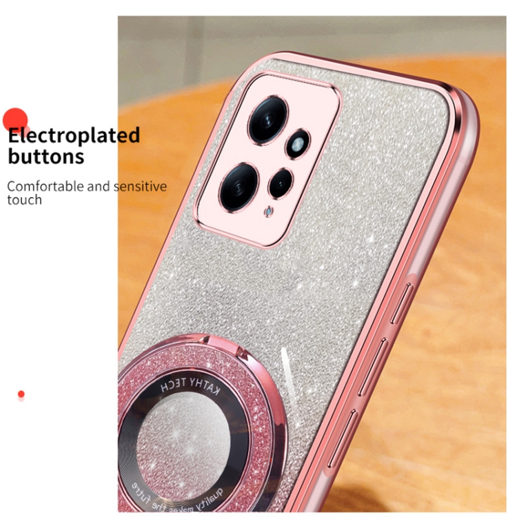 Funda de Teléfono de TPU con Soporte Redondo y Purpurina Degradada Chapada Global para Redmi Note 12 4G (Negra)