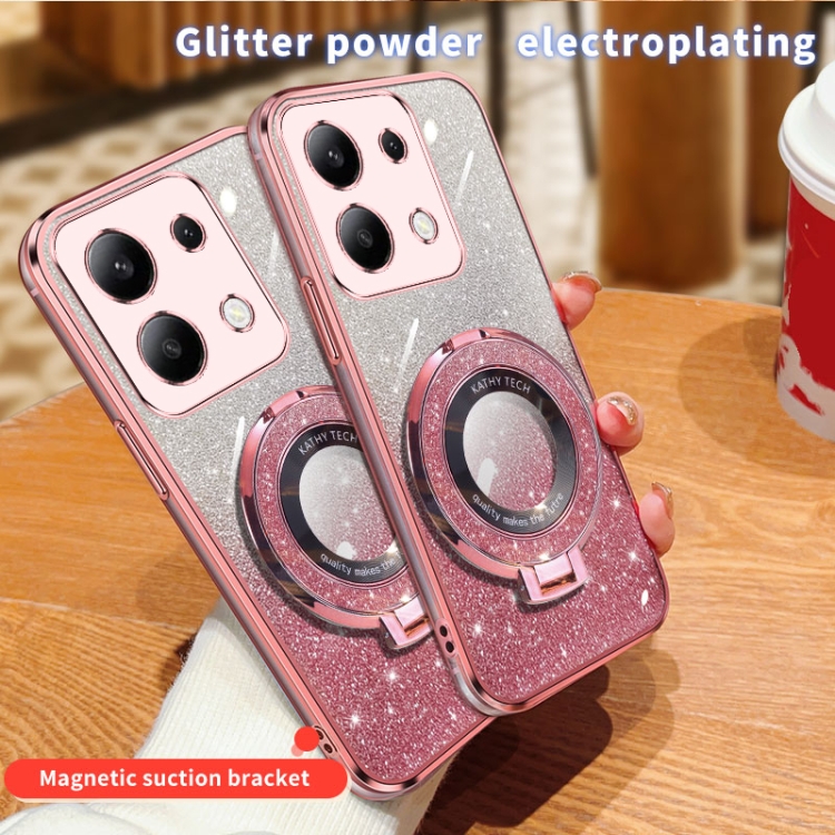 Funda de Teléfono de TPU con Soporte Redondo y Purpurina Degradada Chapada para Redmi Note 13 4G (Negra)
