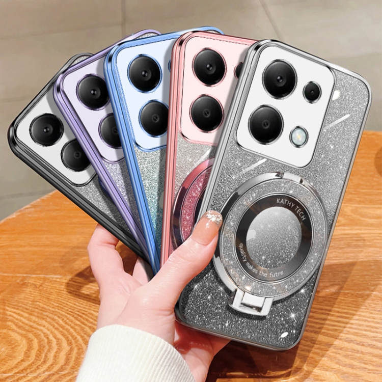 Funda de Teléfono de TPU con Soporte Redondo y Purpurina Degradada Chapada para Redmi Note 13 Pro 4G (Azul Sierra)