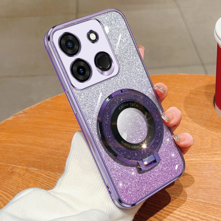 Funda de TPU con Soporte Redondo y Purpurina Degradada para Infinix Smart 7 (Morado)