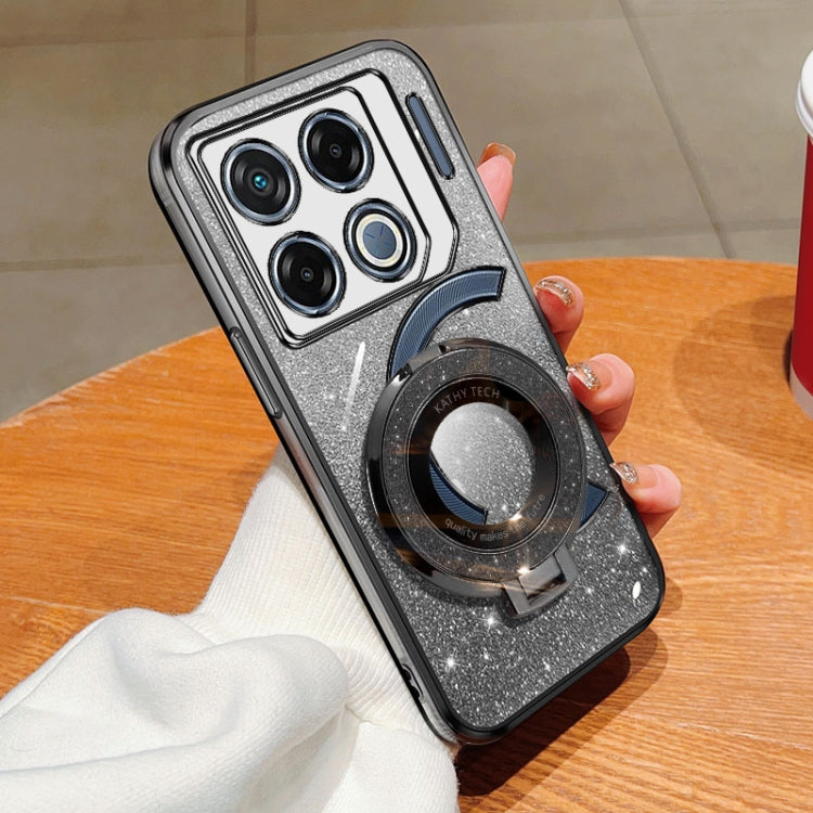 Funda de TPU con Soporte Redondo y Purpurina Degradada para Infinix GT 20 Pro (Negro)