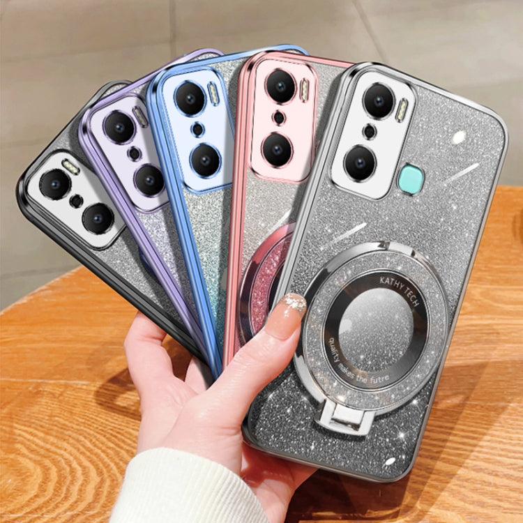Funda TPU con Soporte Redondo y Purpurina Degradada para Infinix Hot 20 Play (Azul Sierra)