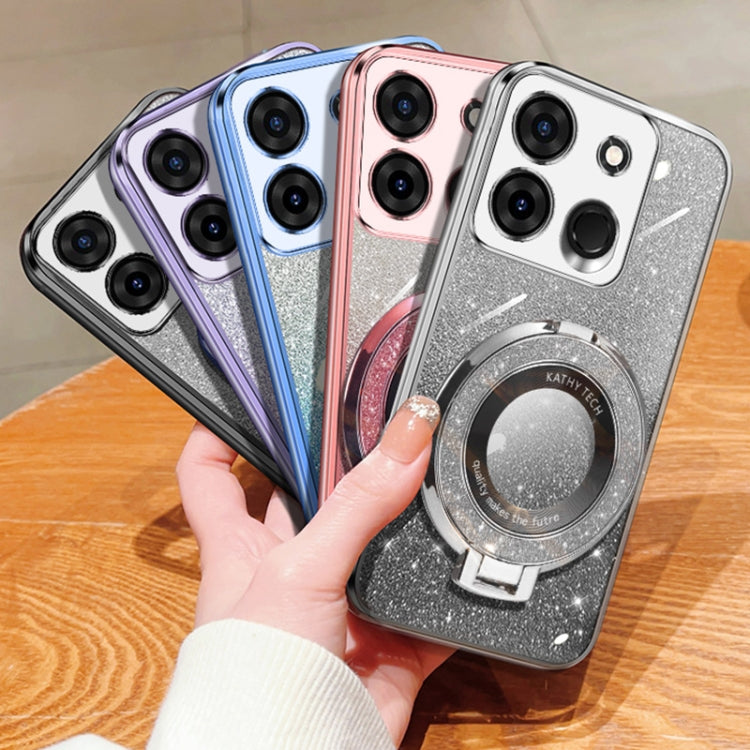 Funda TPU con Soporte Redondo y Purpurina Degradada para Infinix Smart 7 (Plateada)