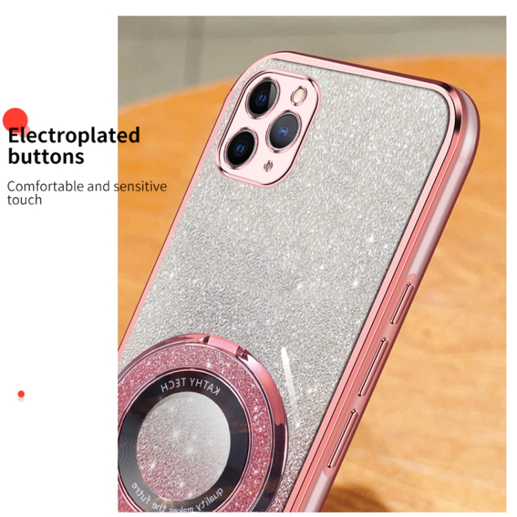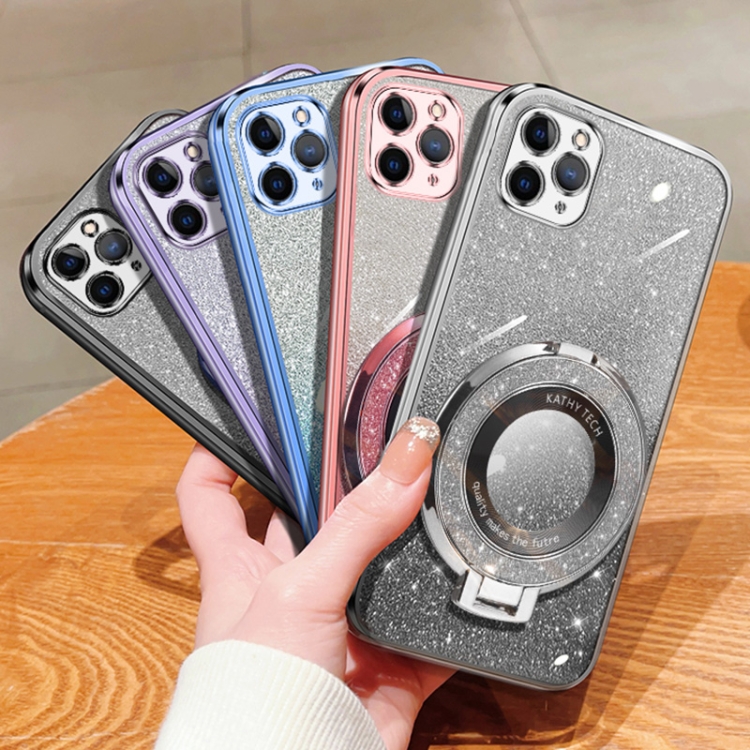 Funda de Teléfono TPU con Soporte Redondo y Purpurina Degradada para iPhone 11 Pro Max (Plateada)