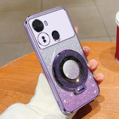 Funda TPU con Soporte Redondo y Purpurina Degradada para Itel S23 (Morado)