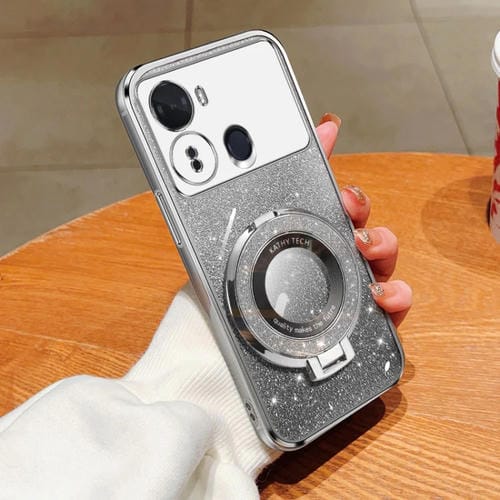 Funda de TPU con Soporte Redondo y Purpurina Degradada para Itel S23 (Plateada)