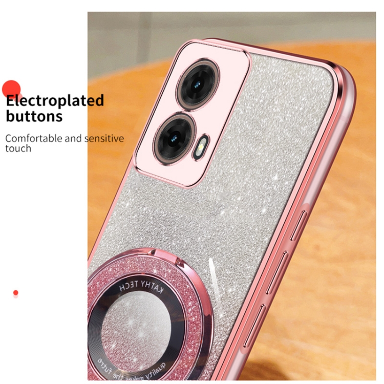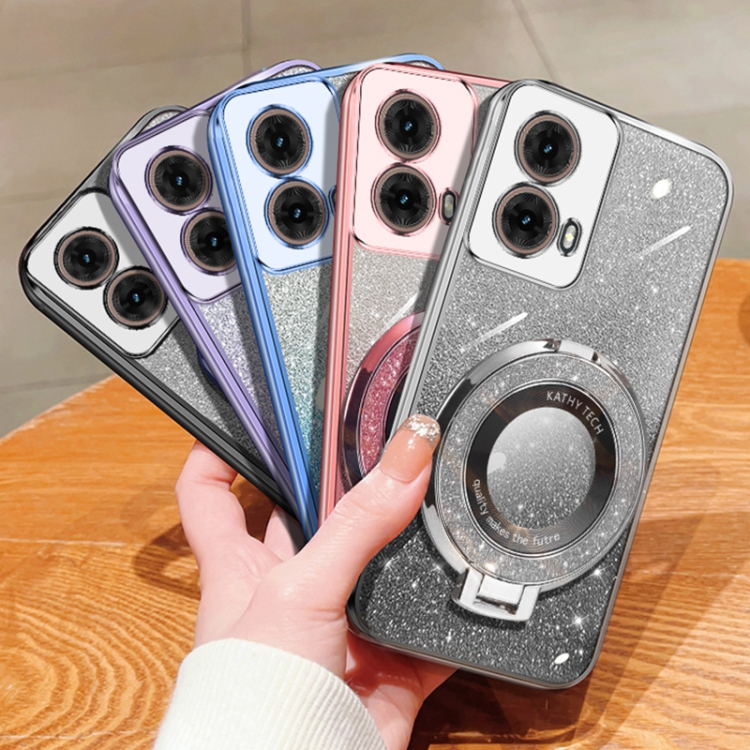 Funda de Teléfono TPU con Soporte Redondo y Purpurina Degradada para Motorola Moto G85 (Negro)