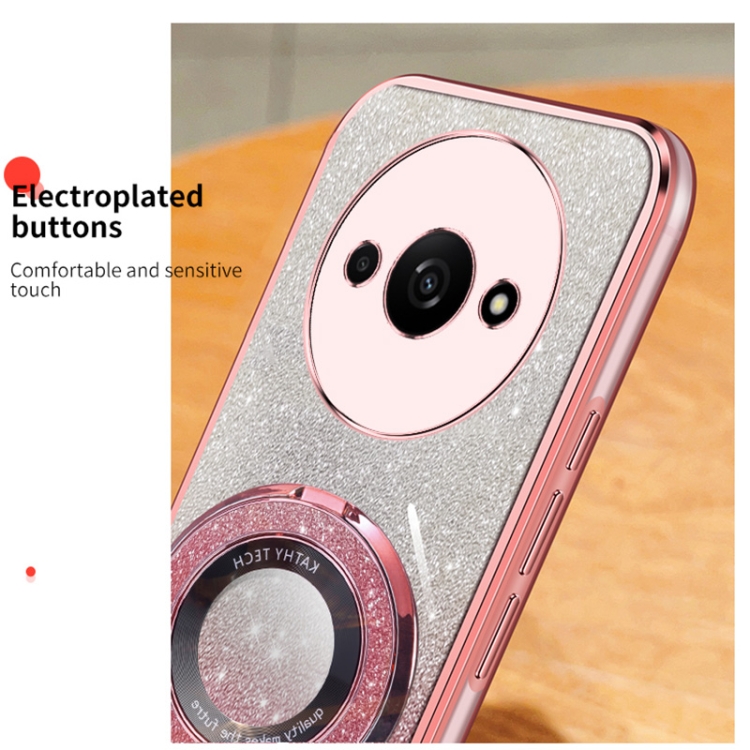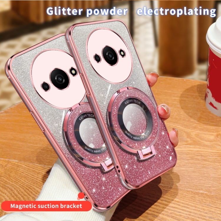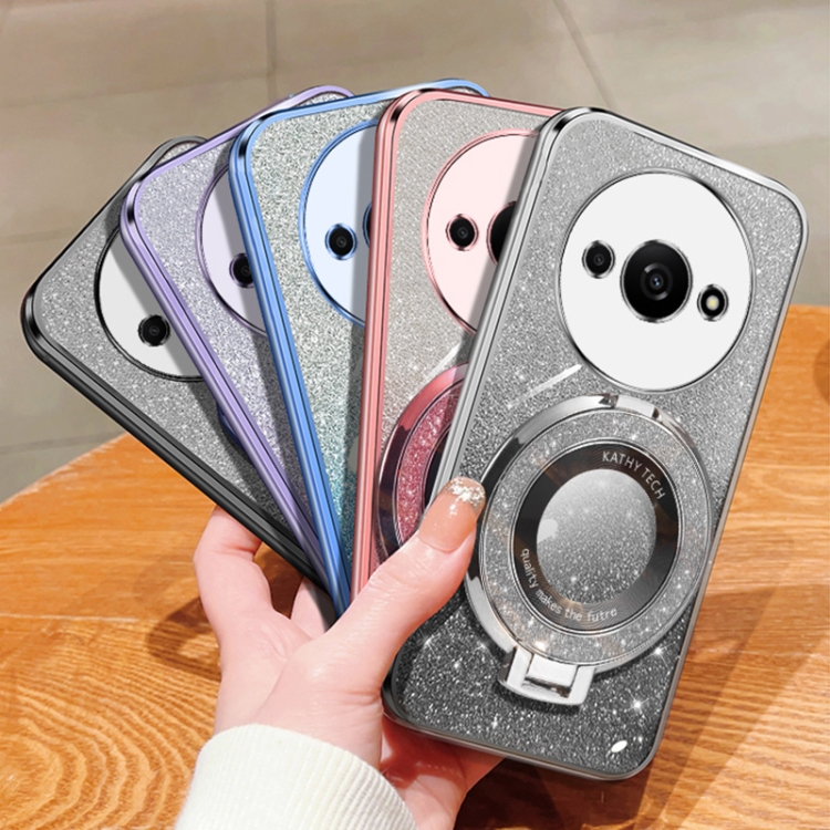 Funda de Teléfono de TPU con Soporte Redondo y Purpurina Degradada Plateada para Redmi A3 (Azul Sierra)