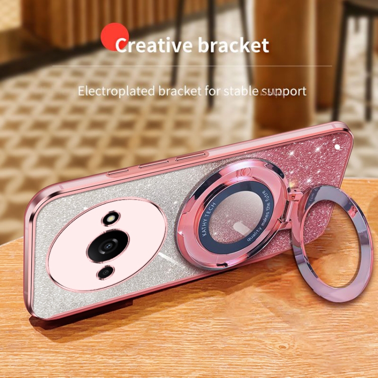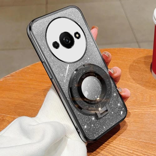 Funda de Teléfono de TPU con Soporte Redondo y Purpurina Degradada Plateada para Redmi A3 (Negro)