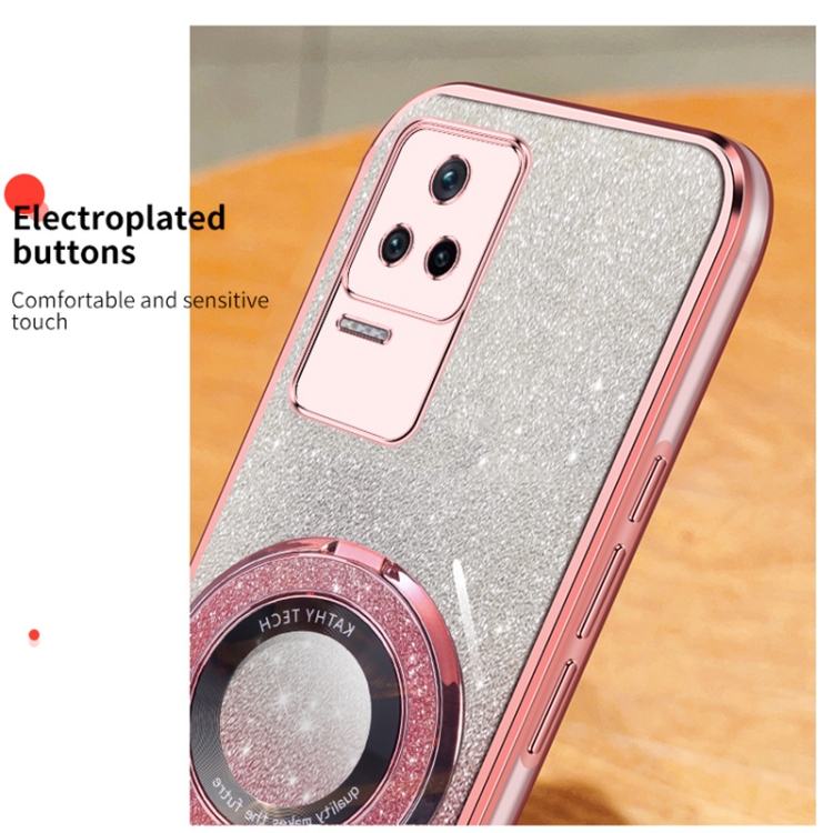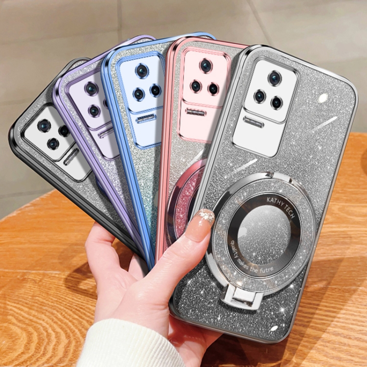 Funda de Teléfono de TPU con Soporte Redondo y Purpurina Degradada Plateada para Redmi K40S (Plateada)