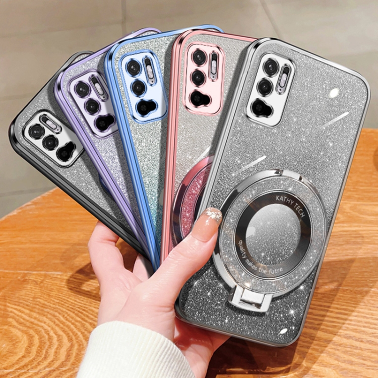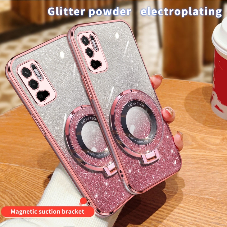 Funda de Teléfono de TPU con Soporte Redondo y Purpurina Degradada Plateada para Redmi Note 10 5G (Rosa)
