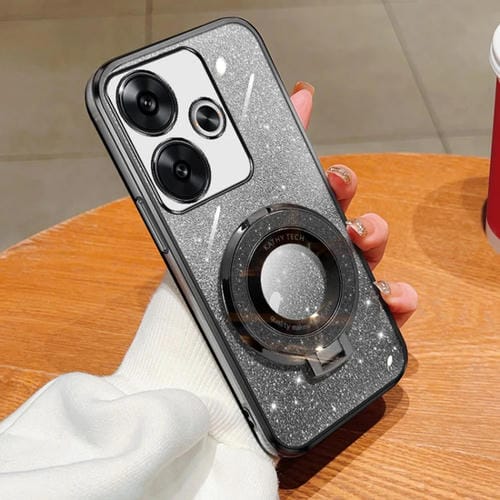 Funda de Teléfono de TPU con Soporte Redondo y Purpurina Degradada Plateada para Redmi Turbo 3 (Negro)