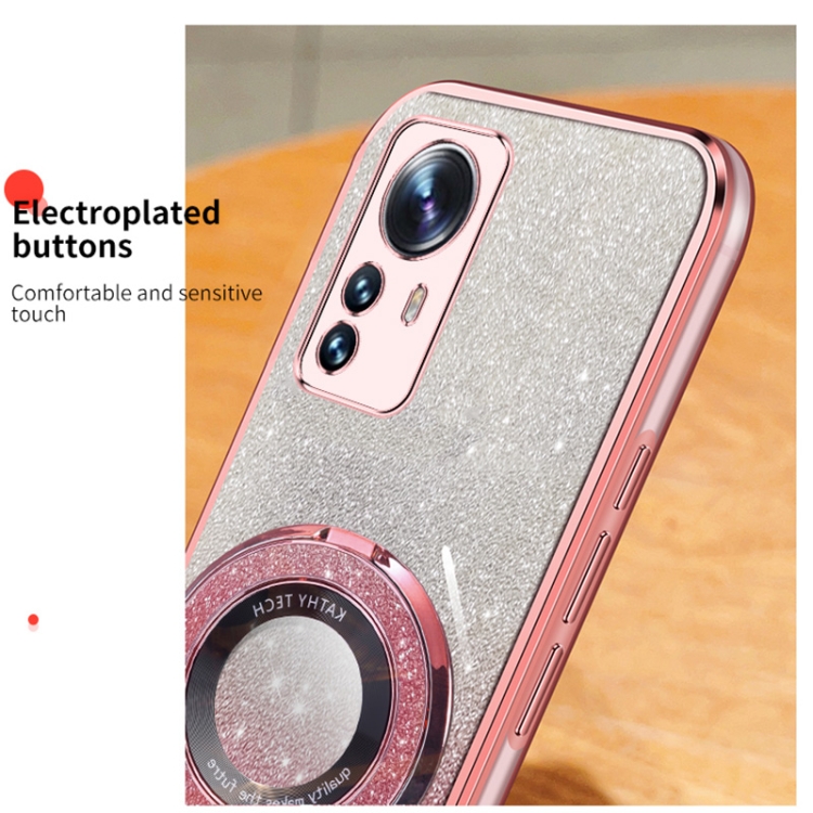 Funda de Teléfono de TPU con Soporte Redondo y Purpurina Degradada Plateada para Xiaomi 12 Pro/12S Pro (Azul Sierra)