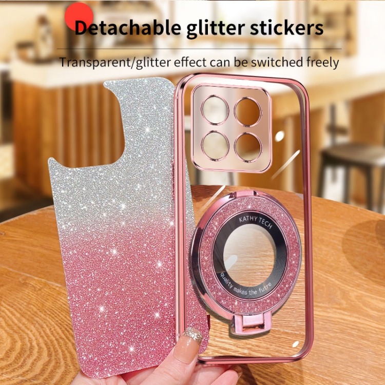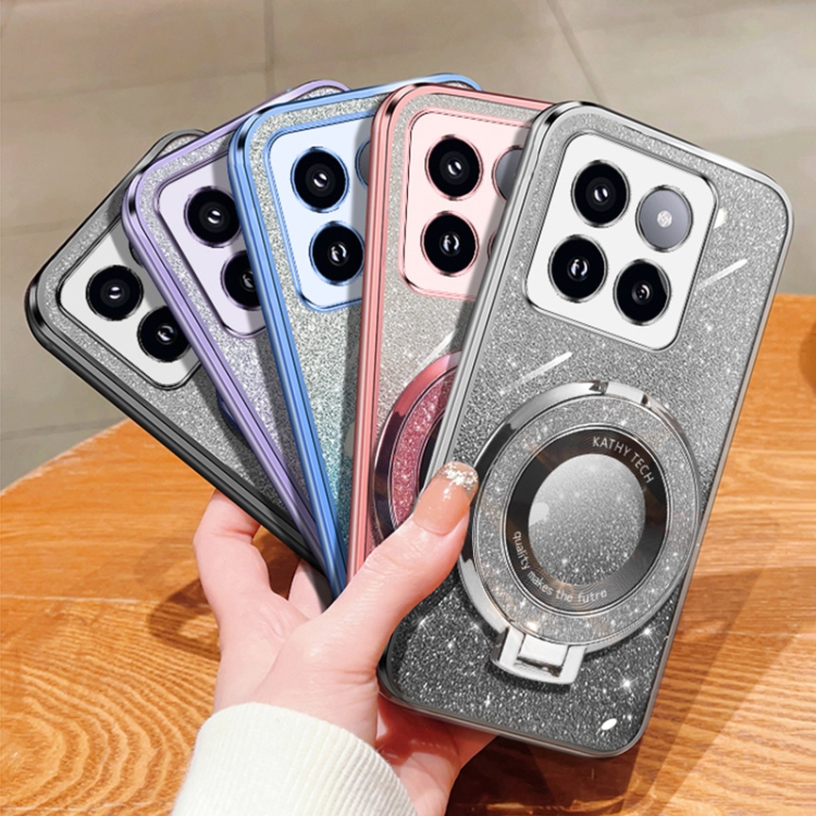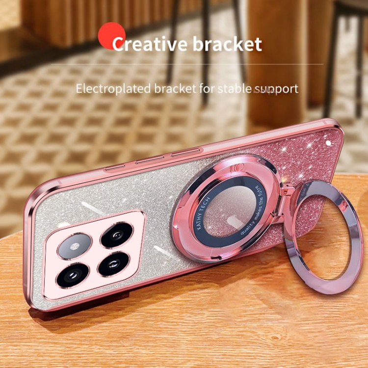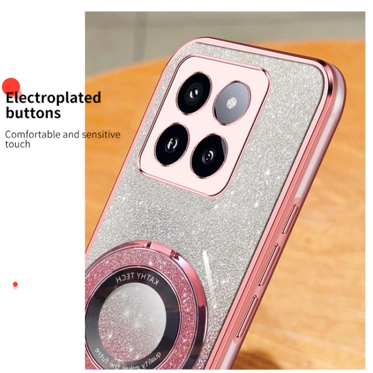 Funda De Teléfono De Tpu Con Soporte Redondo Y Purpurina Degradada Plateada Para Xiaomi 14 Pro (Rosa)