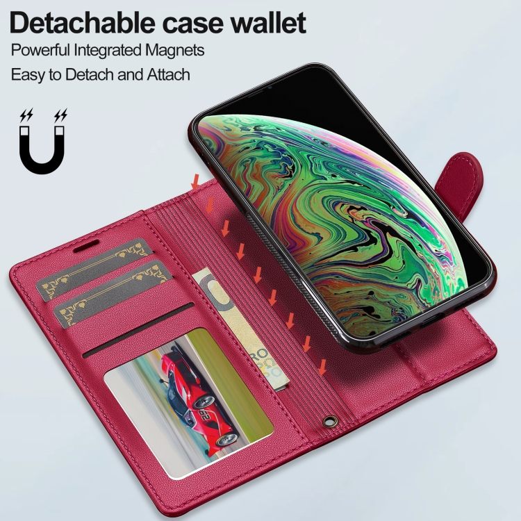 Funda de teléfono desmontable Pu Magsafe con cordón para iPhone Xr Lc.Imeeke L2 Series (Rojo)