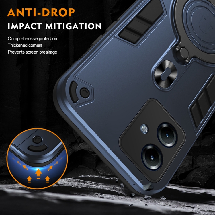 Funda híbrida TPU y PC con soporte giratorio 360° y anillo metal para Motorola Moto G14 (Azul Marino)