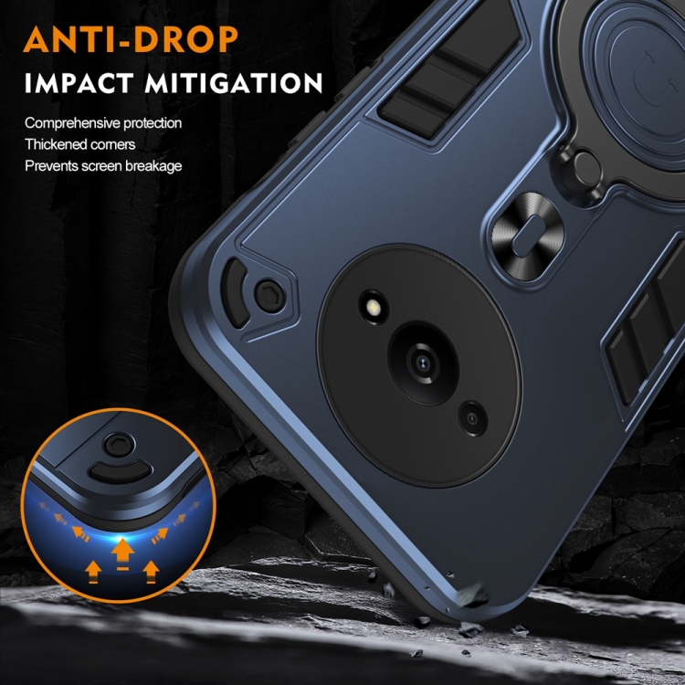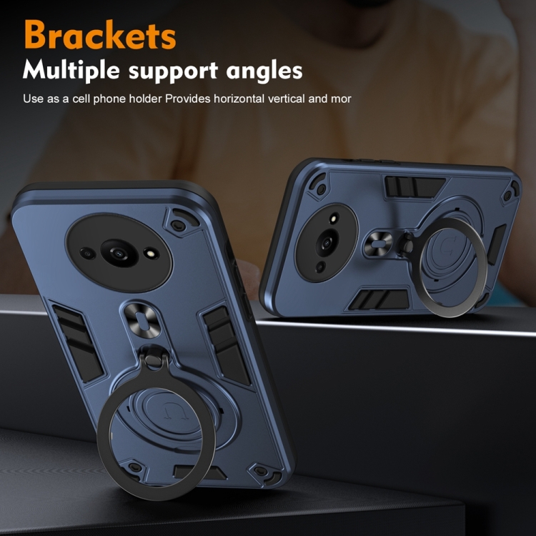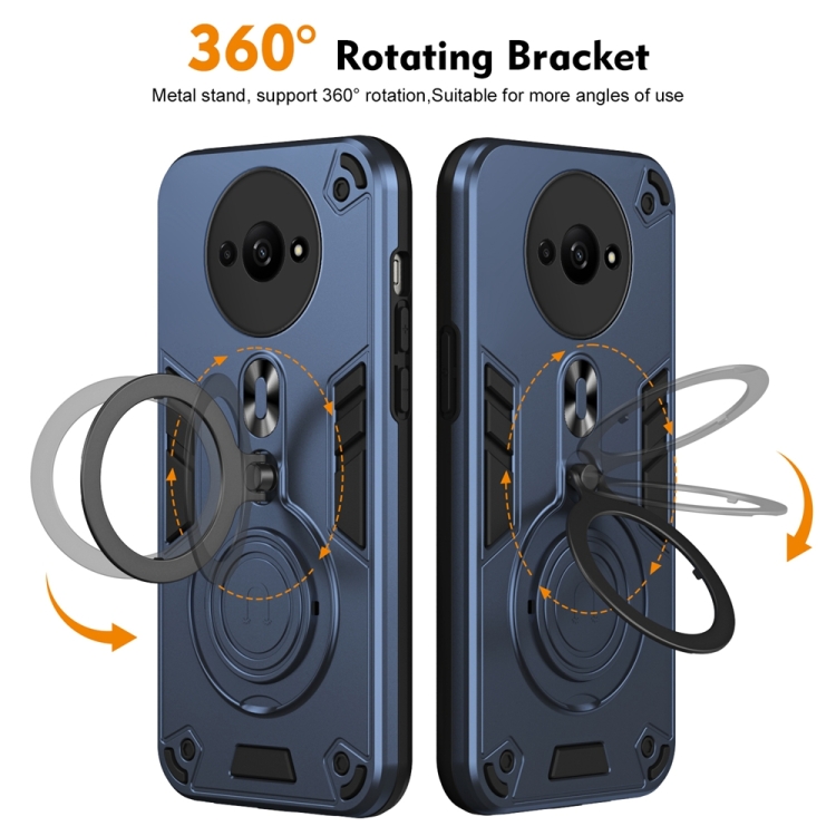 Funda de Teléfono Híbrida de TPU y PC con Soporte Giratorio de 360 Grados y Anillo de Metal para Redmi A3 (Azul Marino)