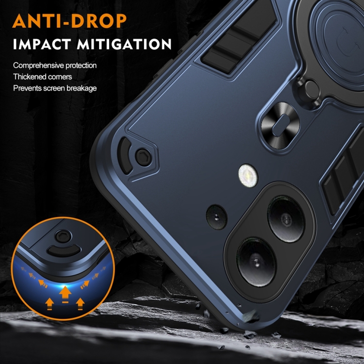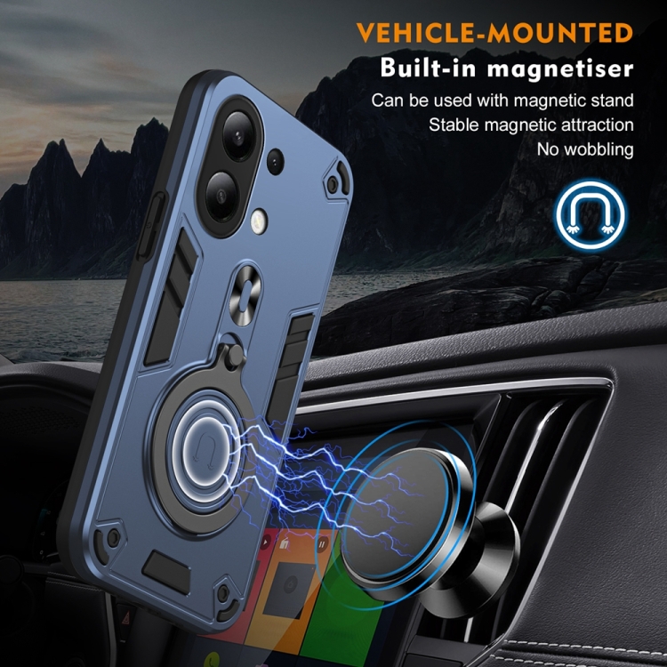 Funda de Teléfono Híbrida de TPU y PC con Soporte Giratorio de 360 Grados y Anillo de Metal para Redmi Note 13 4G (Azul Marino)