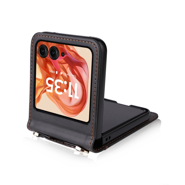 Funda Plegable de PU con Tarjetero Tipo Bandolera para Motorola Razr 50 (Negra)
