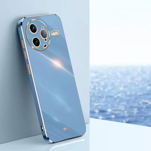 Funda de TPU con Borde Dorado y Revestimiento 6D Recto para Redmi K80 Pro Xinli (Azul Celestial)