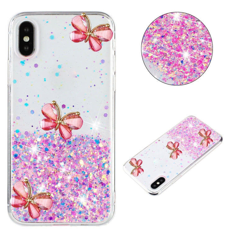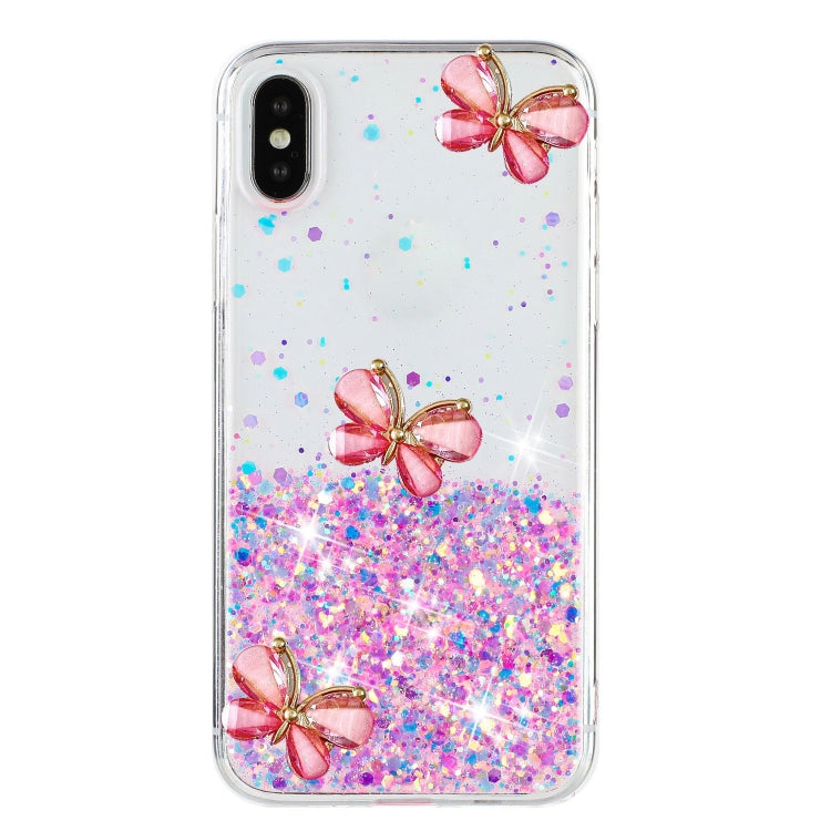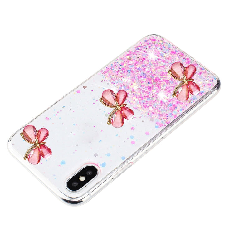Funda TPU iPhone Xs Max Diseño Mariposas Estrellas Brillantes (Rosa)