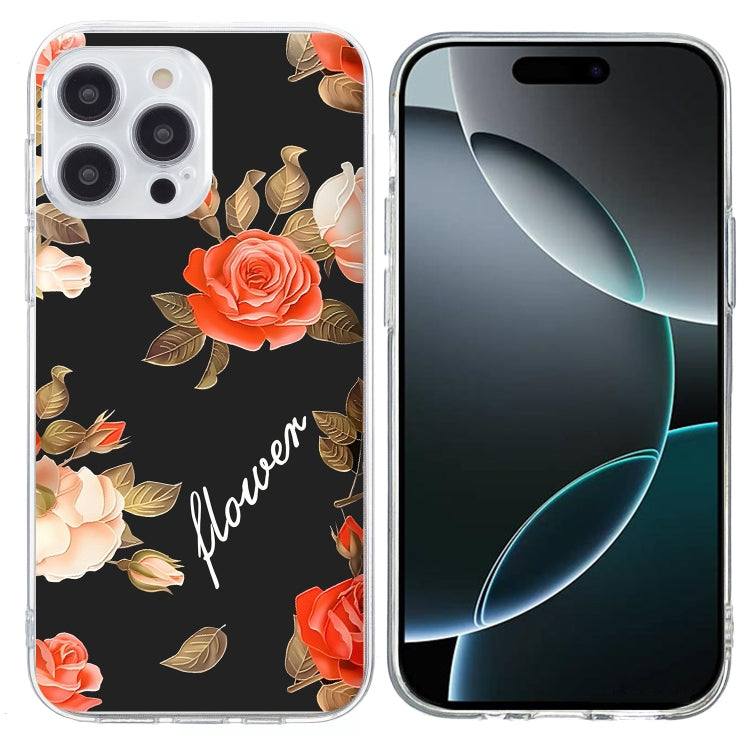 Funda TPU iPhone 16 Pro Patrón Pintura Colorida Flores (Negro)