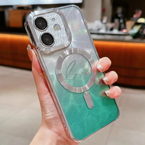 Funda TPU con Purpurina y Degradado de Plumas para iPhone 12 (Verde)