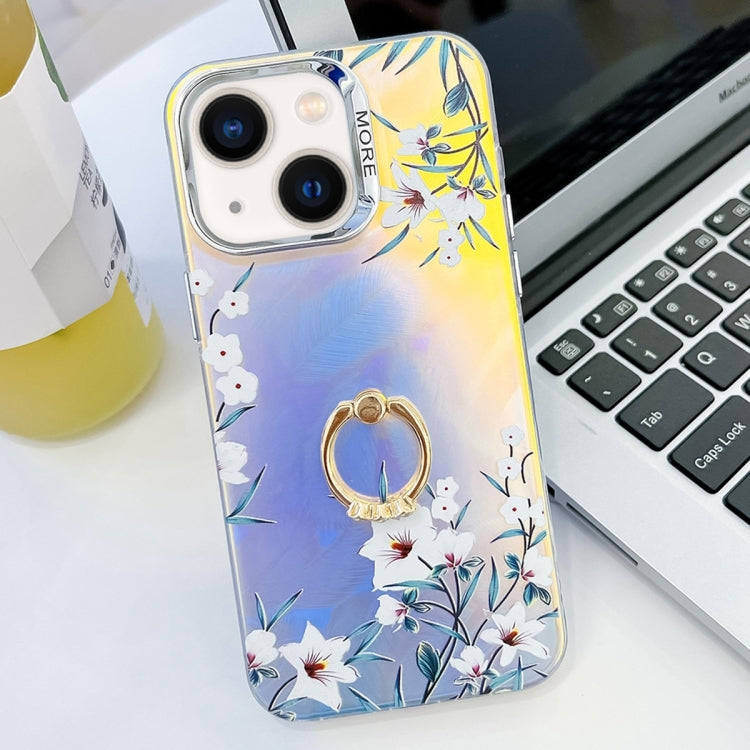 Funda TPU con Soporte Anillo Flores Láser Galvanizado iPhone 14 (Morning Glory)