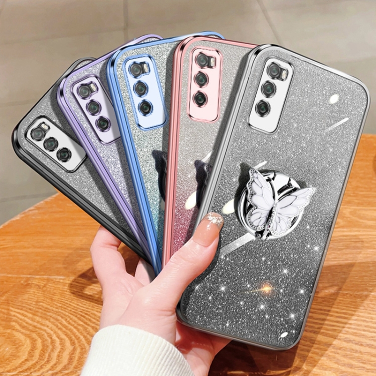 - 1x Funda TPU con Soporte Mariposa Purpurina Degradada para Huawei Enjoy 20 Pro (Rosa)