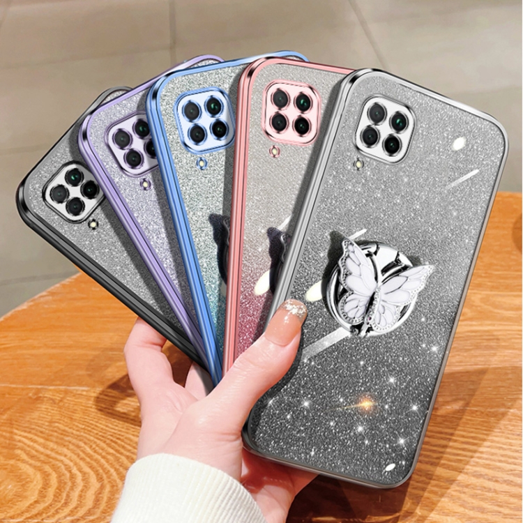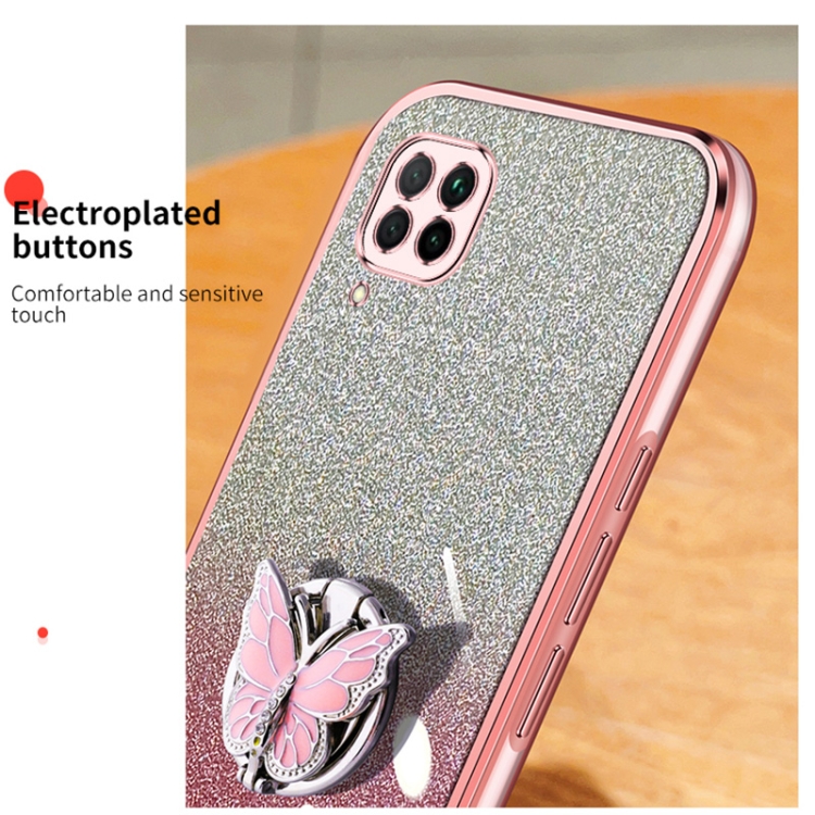 Funda TPU con Soporte Mariposa Purpurina Degradada para Huawei Nova 6 Se (Rosa)