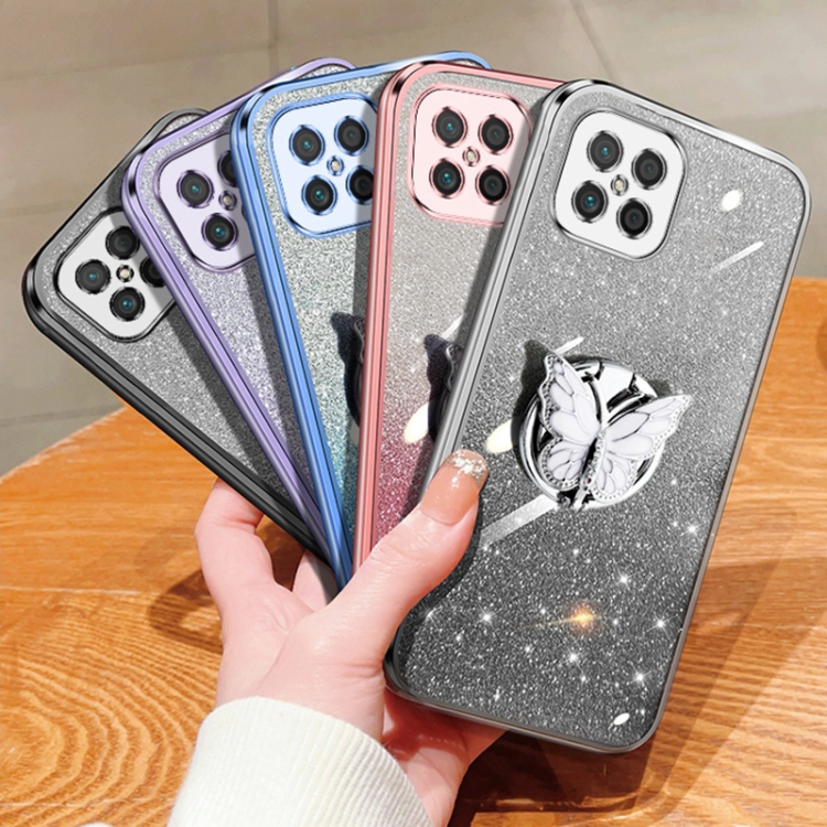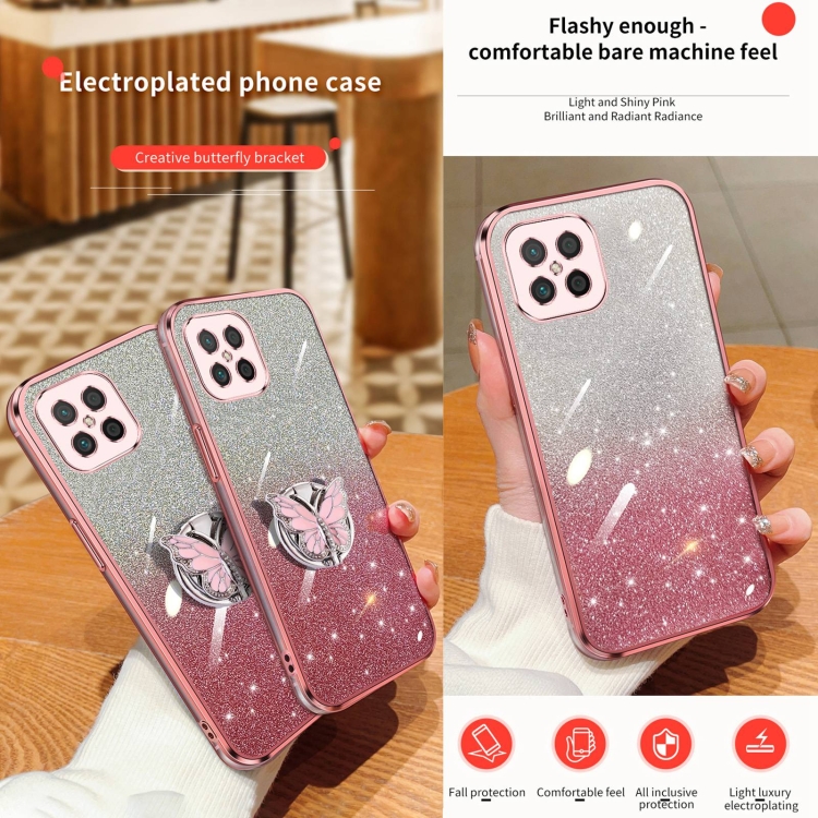 Funda TPU con Soporte Mariposa Purpurina Degradada para Huawei Nova 8 Se (Rosa)