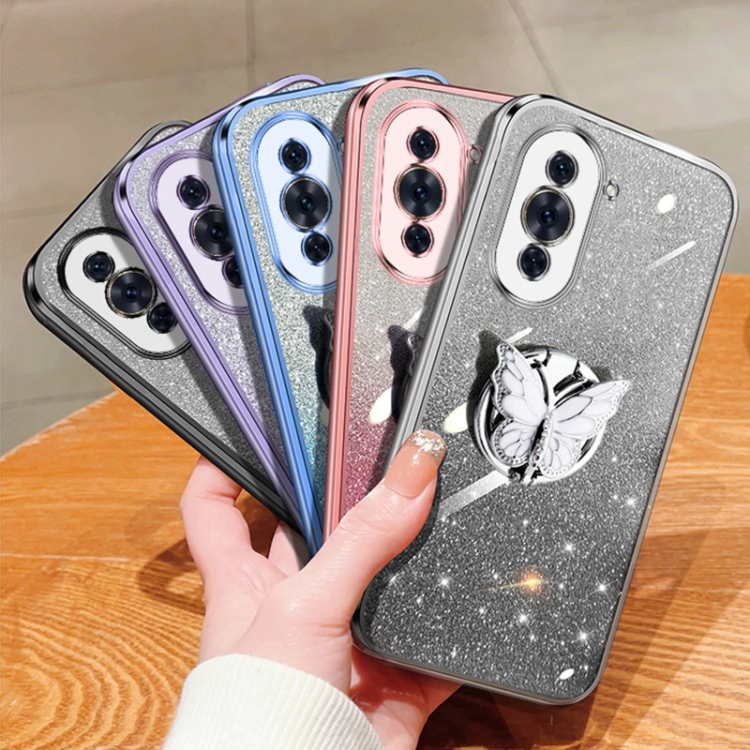 Funda TPU con Soporte Mariposa Purpurina Degradada para Huawei Nova 10 (Plateada)
