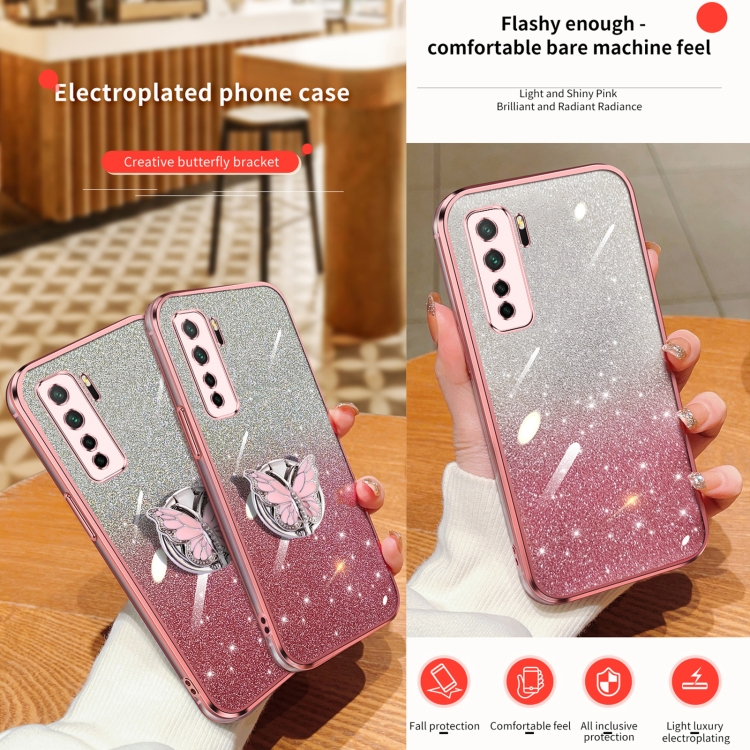 Funda TPU con Soporte Mariposa y Purpurina Degradada para Huawei Nova 7 Se (Plateada)