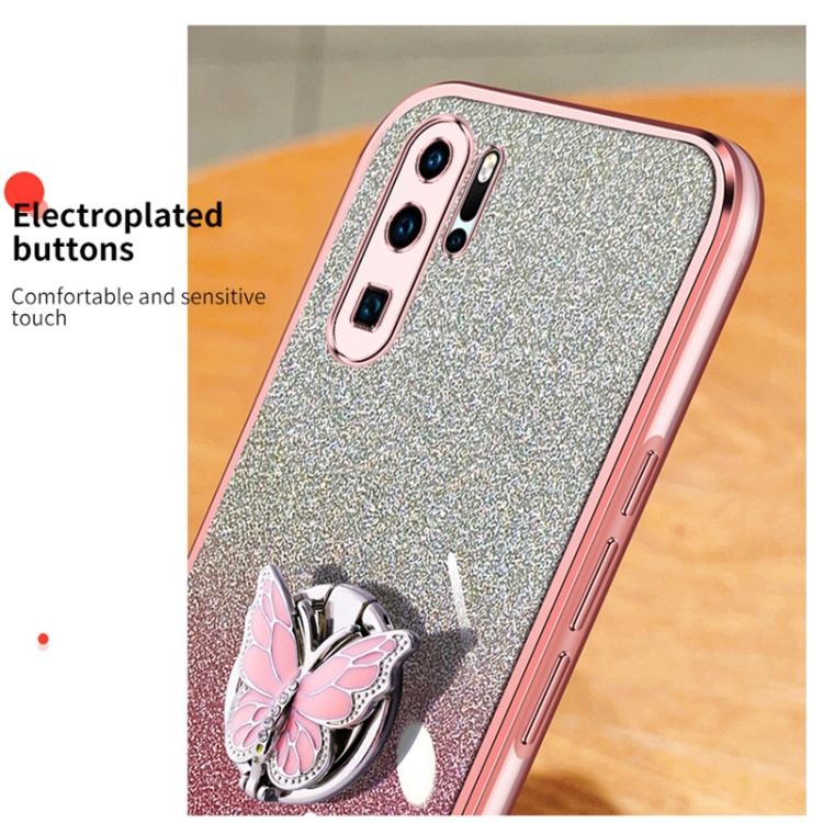 Funda TPU con Soporte Mariposa y Purpurina Degradada para Huawei P30 Pro (Negra)