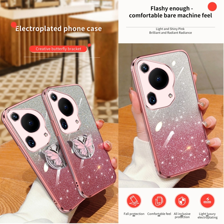 • 1x Funda TPU con Soporte Mariposas y Purpurina Degradada para Huawei Pura 70 Ultra (Negra)