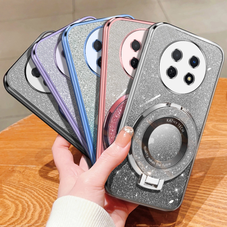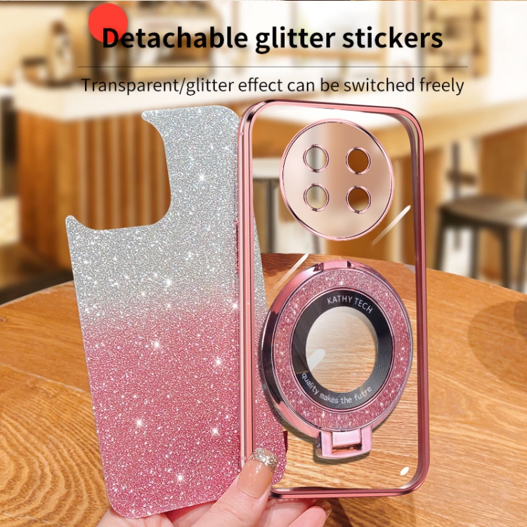 Funda TPU con Soporte Redondo y Purpurina Degradada para Huawei Enjoy 60X (Azul Sierra)