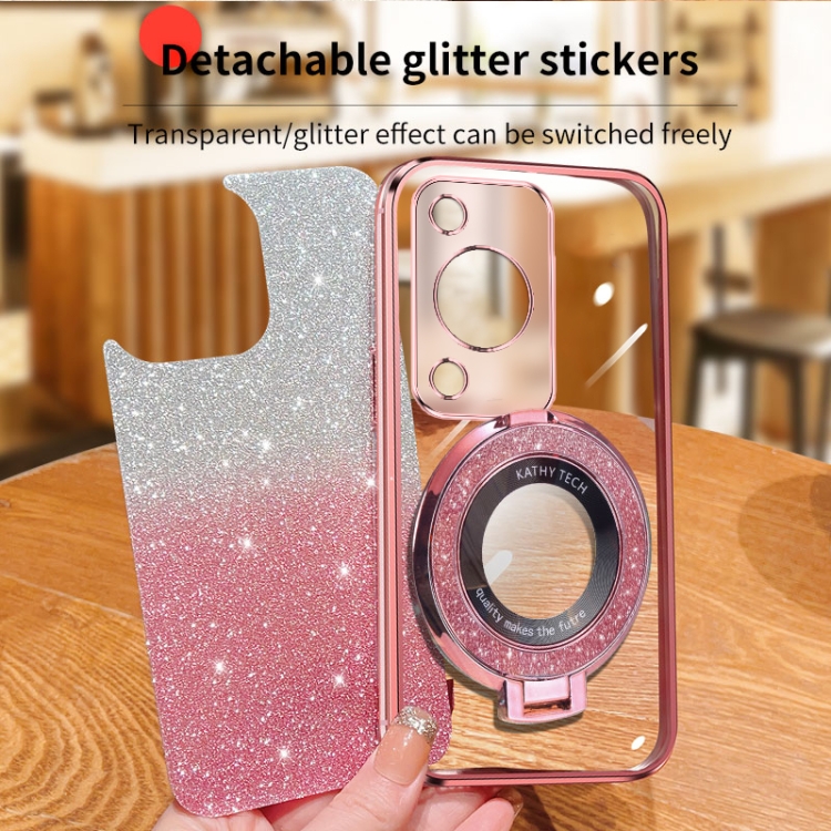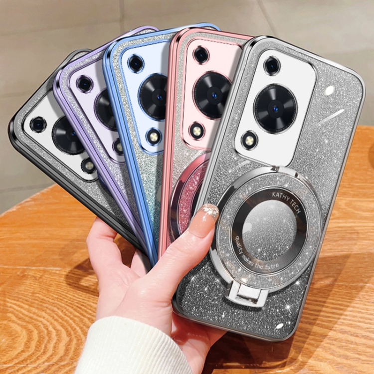 Funda TPU con Soporte Redondo y Purpurina Degradada para Huawei Enjoy 70 (Morado)