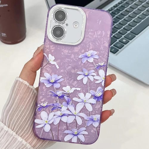 Funda TPU para iPhone 16 con Textura de Plantas y Flores Galvanizadas (Lilas)