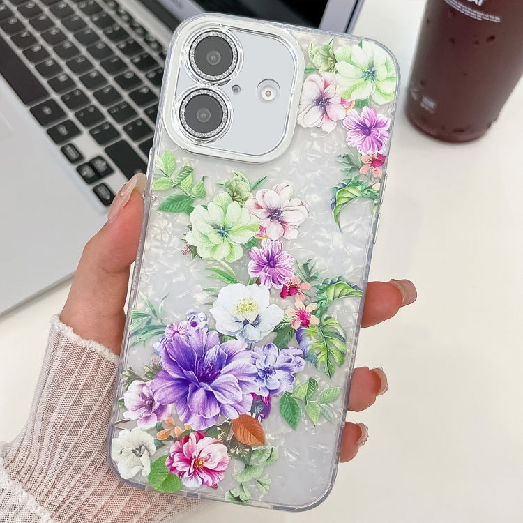 Funda TPU iPhone 16 Textura Plantas Flores Galvanizadas (Peonía Colorida)