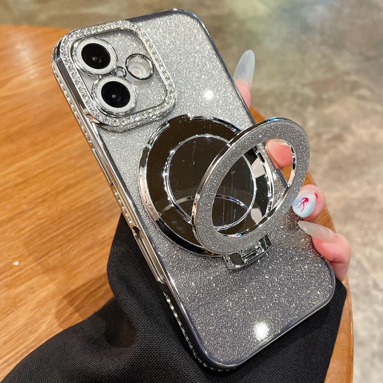 Funda de TPU MagSafe con purpurina y espejo de diamantes de imitación para iPhone 17 (plata espacial)