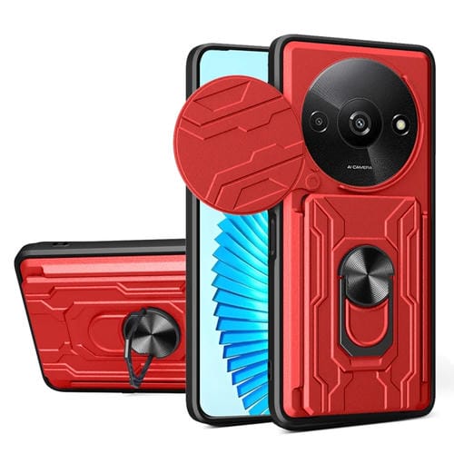 Funda de TPU+PC con Ranura para Tarjetas y Cierre Deslizante para Xiaomi Redmi A3 (Rojo)