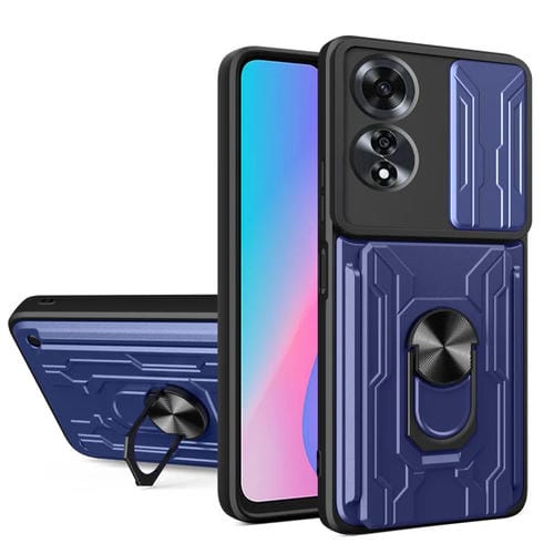 Funda Deslizante de TPU y PC con Ranura para Tarjetas para Oppo A60 4G (Azul)