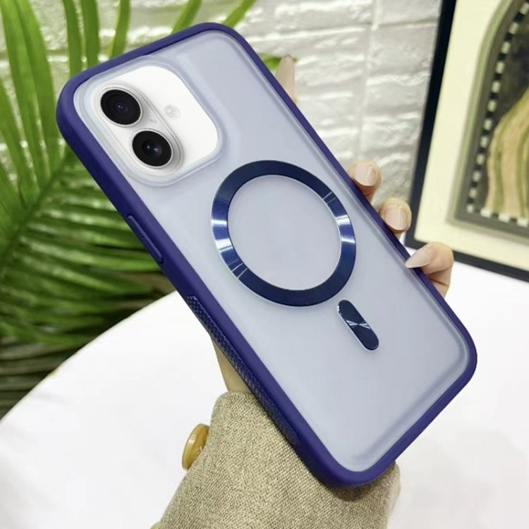 Funda híbrida silicona acrílica Magsafe 3 en 1 para iPhone 16 (Azul Oscuro)