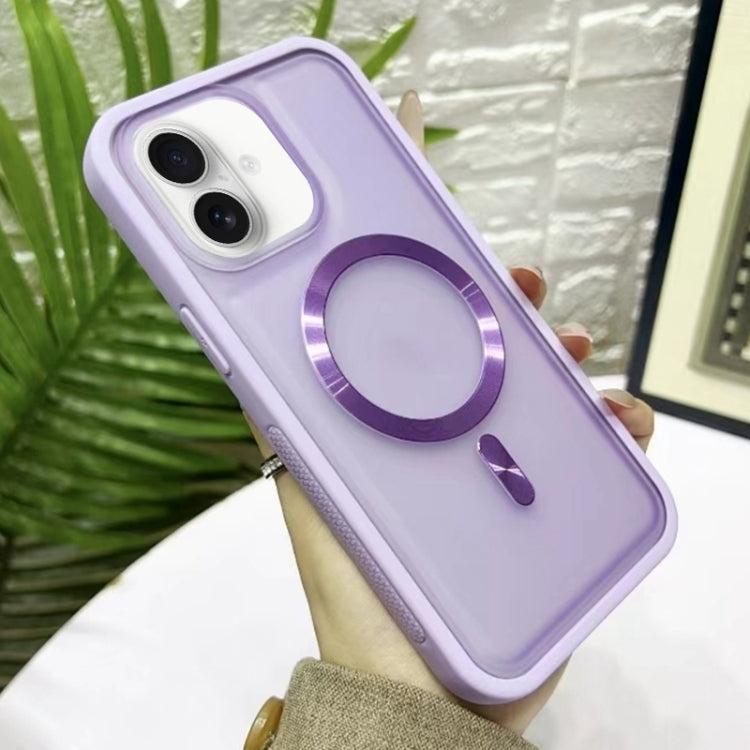 Funda híbrida silicona acrílica Magsafe para iPhone 16 (Morada)