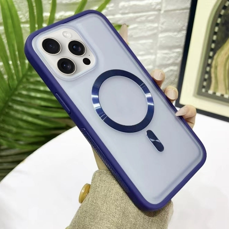 Funda híbrida silicona acrílica Magsafe para iPhone 16 Pro (Azul Oscuro)