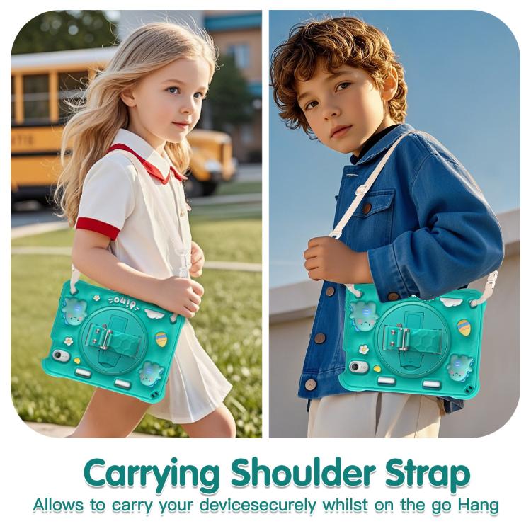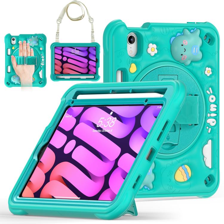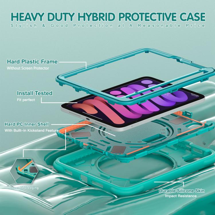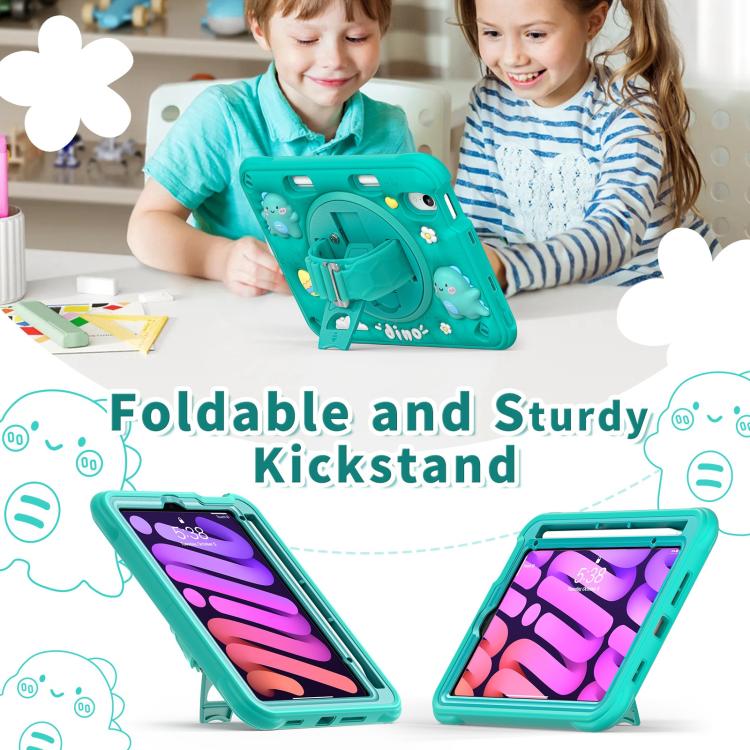 Funda híbrida de silicona para iPad Mini 2024 Mini 6 con función atril y rotación (Verde)