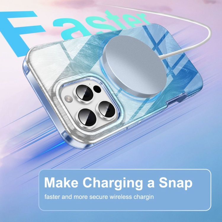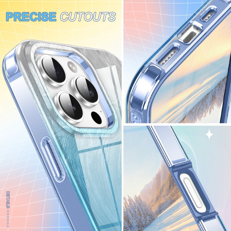 Funda híbrida TPU PC iPhone 16 Pro diseño plumas degradado (Azul)