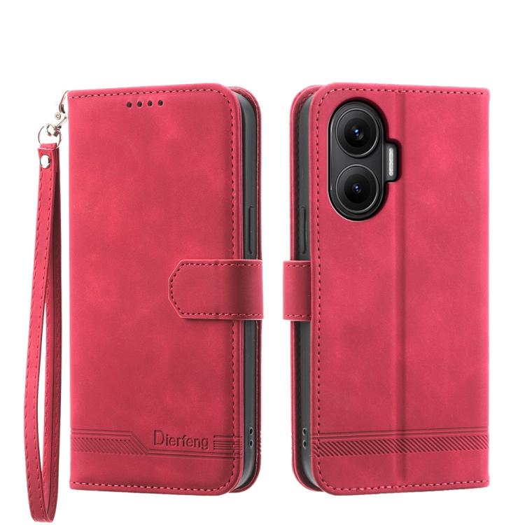 Funda híbrida de TPU y cuero sintético Dierfeng Dream Line para Redmi Turbo 4 Pro y Xiaomi Poco F7 (roja)