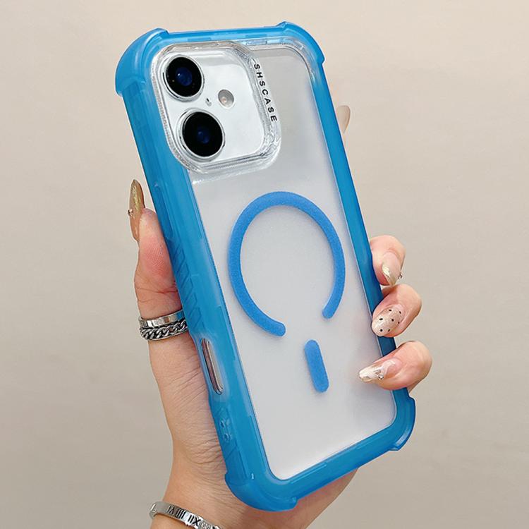 Funda híbrida de TPU y PC 3 en 1 MagSafe transparente mate para iPhone 17 (Azul)